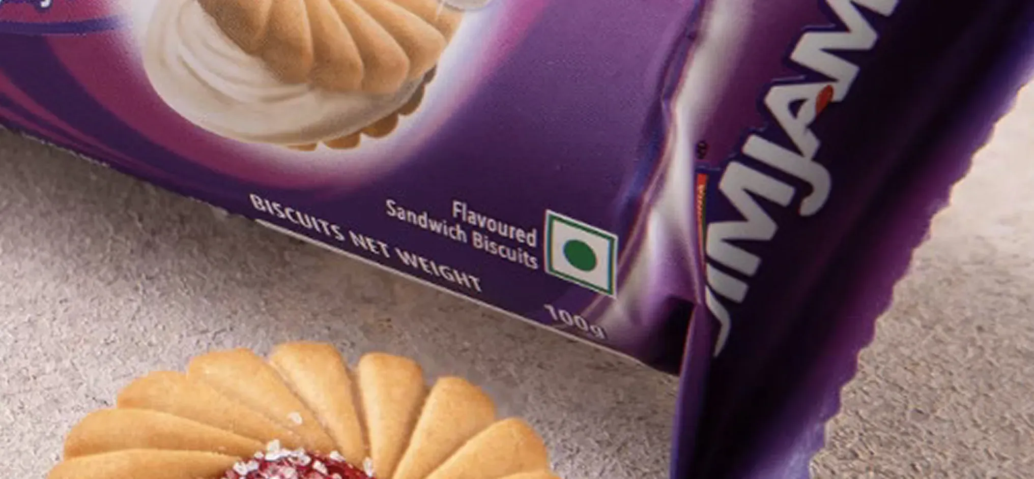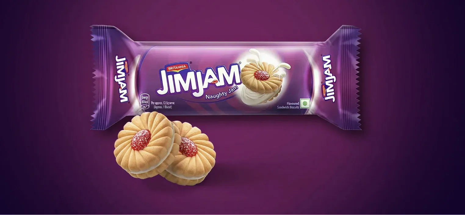 Britannia Jim Jam biscuits contain zero trans fat and are made with familiar bakery ingredients such as refined wheat flour (maida), sugar, vegetable fats and milk products, which create the biscuit’s crunchy texture and delicious filling. The fruity centre gets its flavour from fruit products like apple juice concentrate and banana powder, along with mixed fruit flavouring.