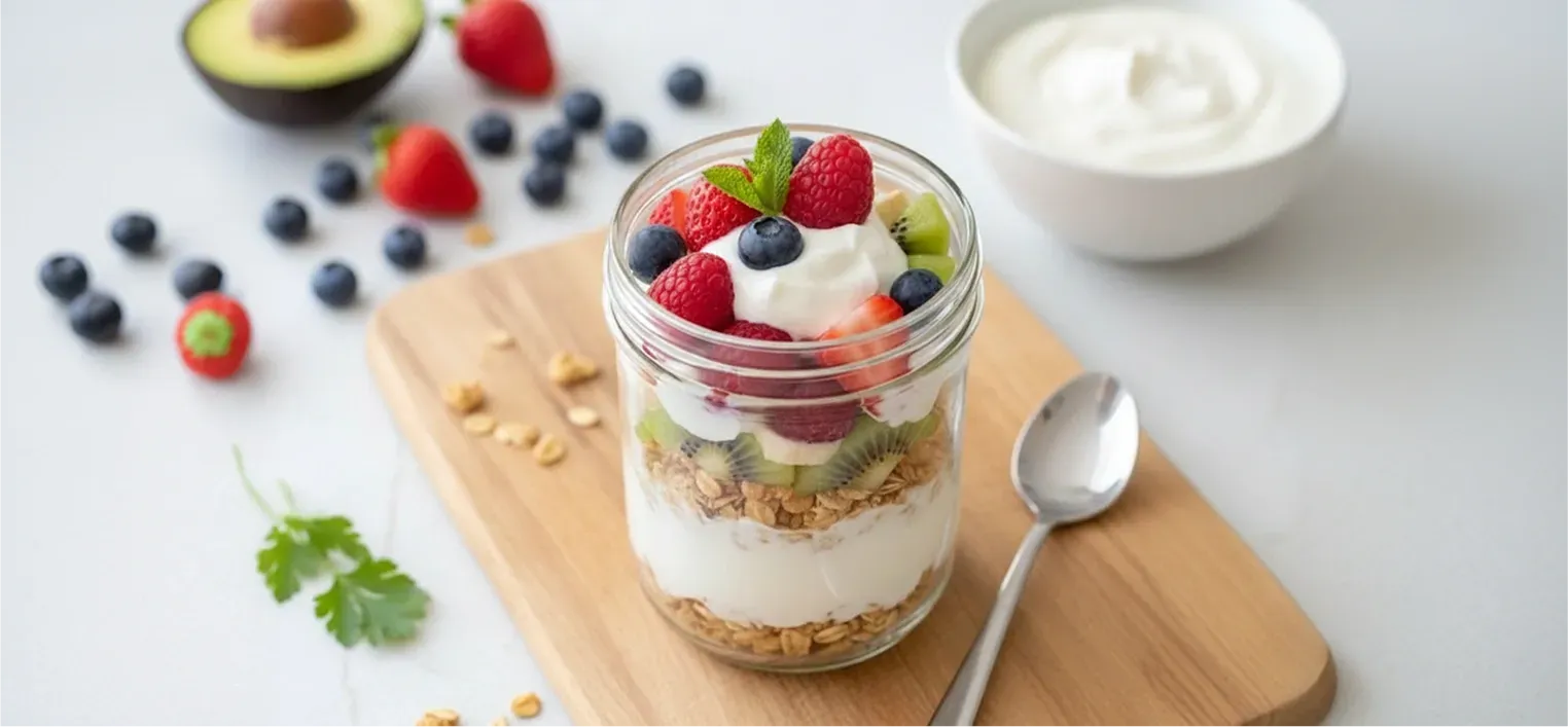How to make: Add yoghurt to a small container and top with sliced fruits for a quick cup.