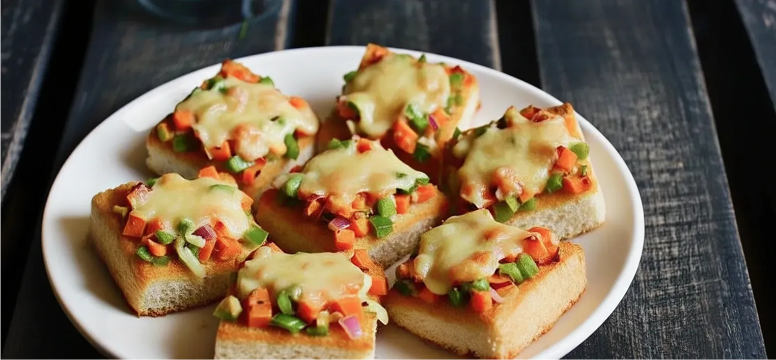 How to make: Toast bread, spread cheese spread, add grated carrot or corn and cut into small squares.